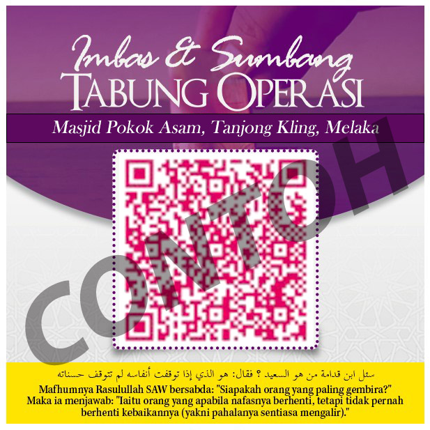 Sumbangan ini bertujuan bagi menampung kos operasi Masjid Pokok Asam, Tanjong Kling, Melaka seperti utiliti (elektrik/air/unifi), penyelenggaraan dan operasi, pembangunan, majlis ilmu online, aktiviti dan program pengimarahan di Masjid Pokok Asam, Tanjong Kling, Melaka.